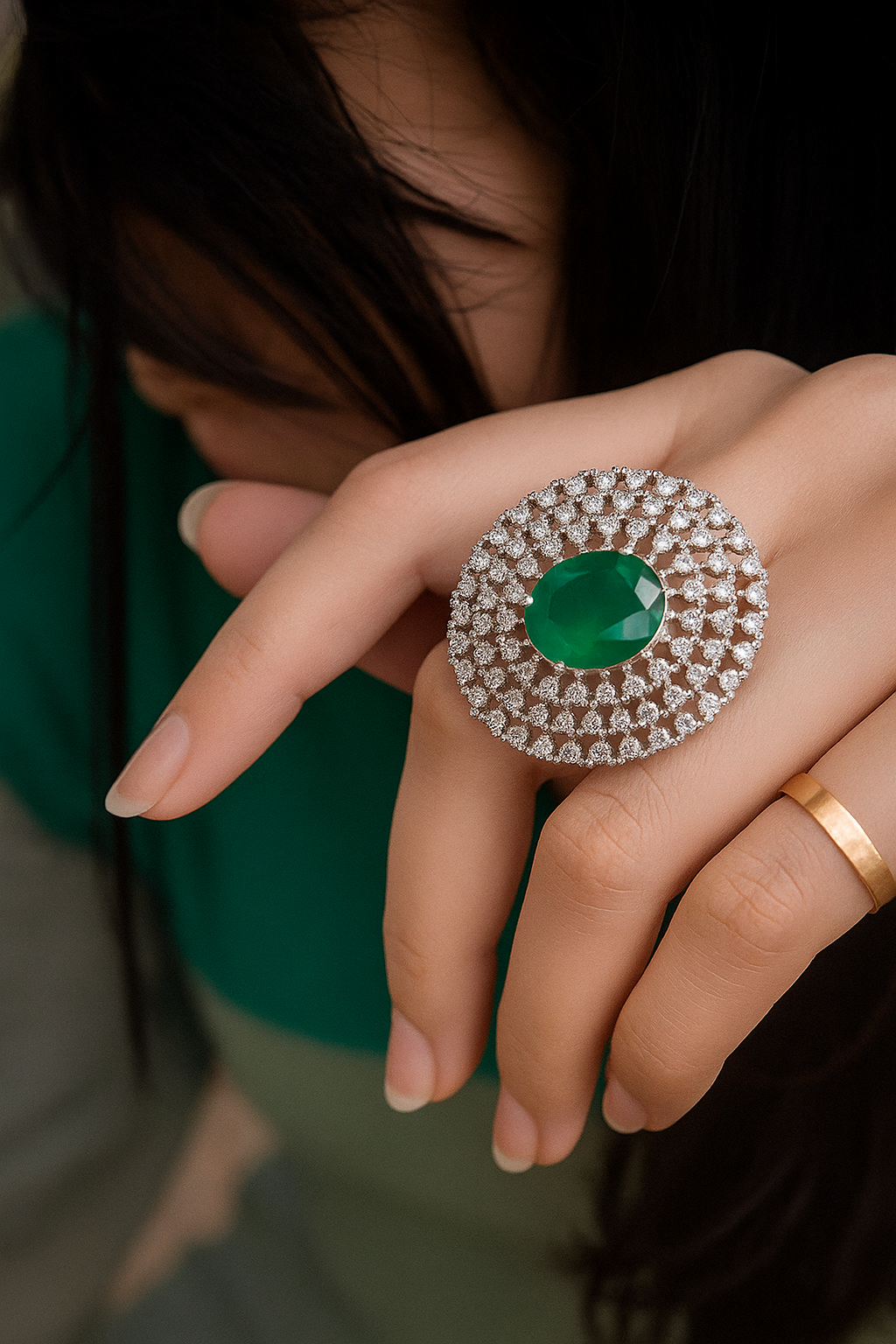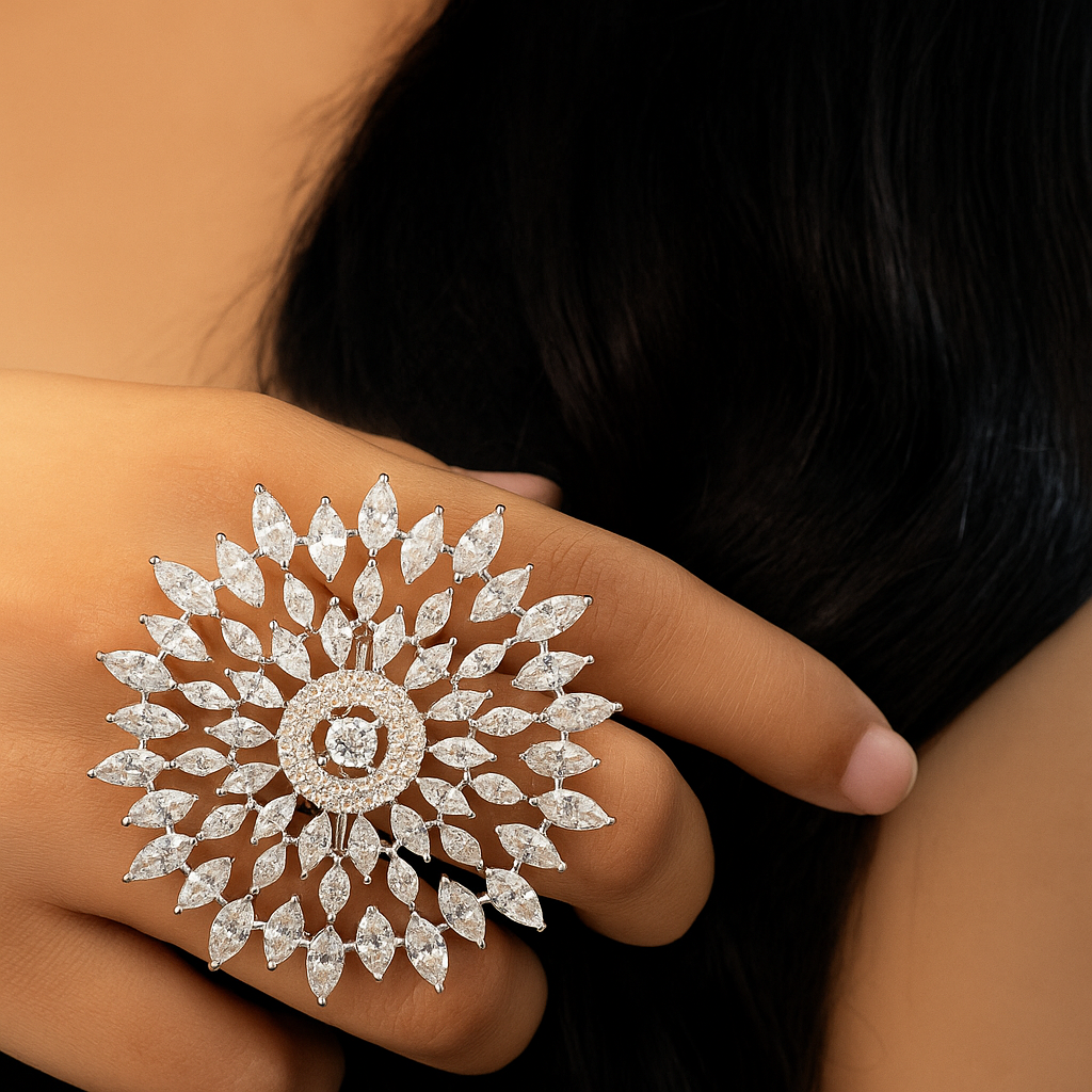 Glam Glow Chunky Ring Base Metal : Brass Plating : Silver Plated Stone Type : American Diamond Type : Finger Ring Net Quantity...
