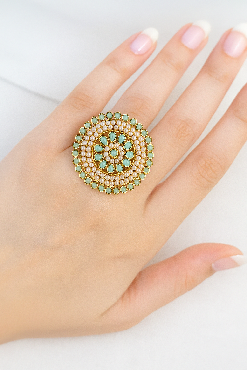 Graceful Shimmer Rings Base Metal : Alloy Plating : Gold Plated Stone Type : Agate Net Quantity (N) : 1 Sizes : Free...