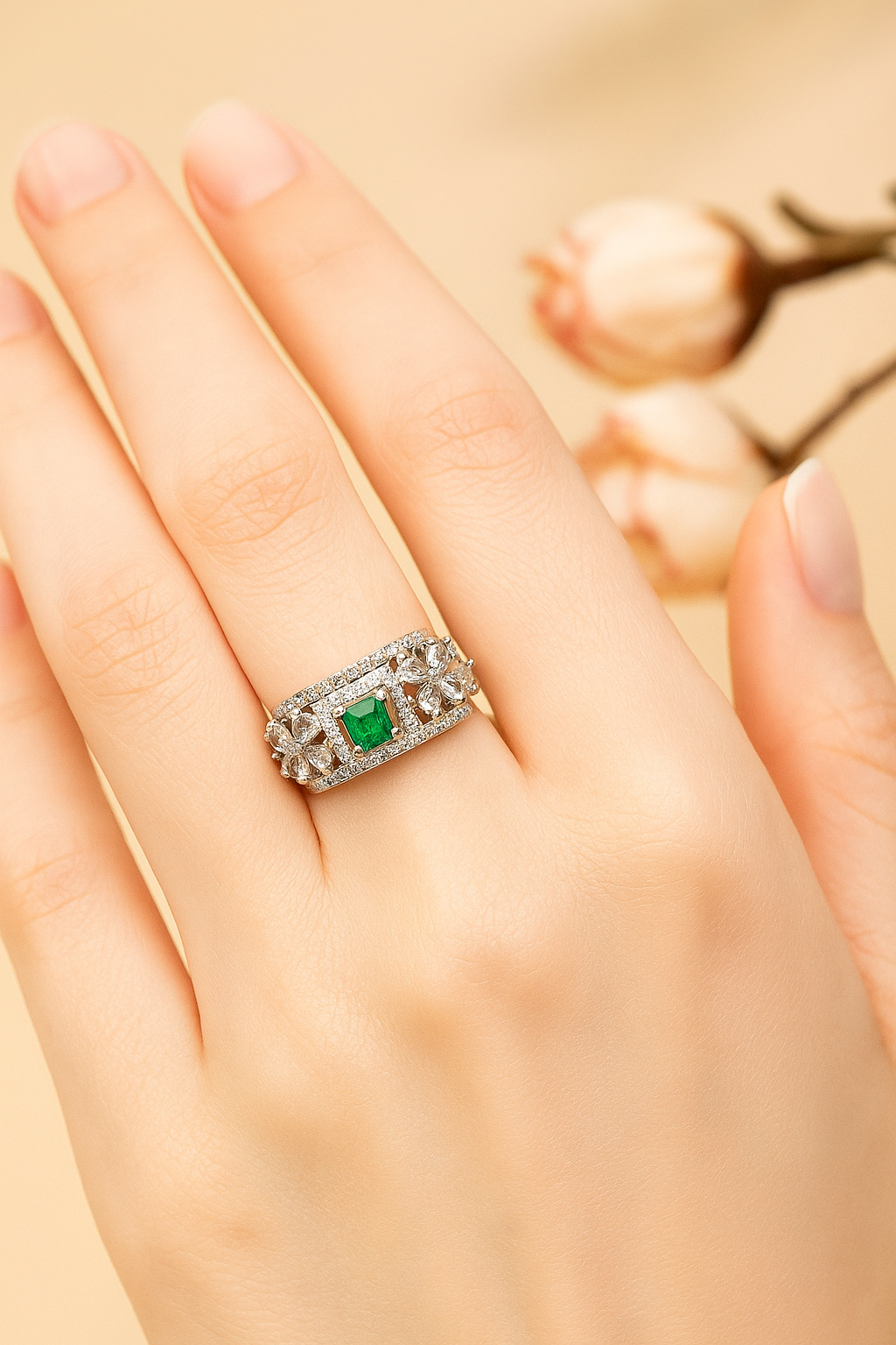 Base Metal : Brass Plating : Silver Plated Stone Type : American Diamond Type : Finger Ring Net Quantity (N) : 1 Sizes : Free Size Country...