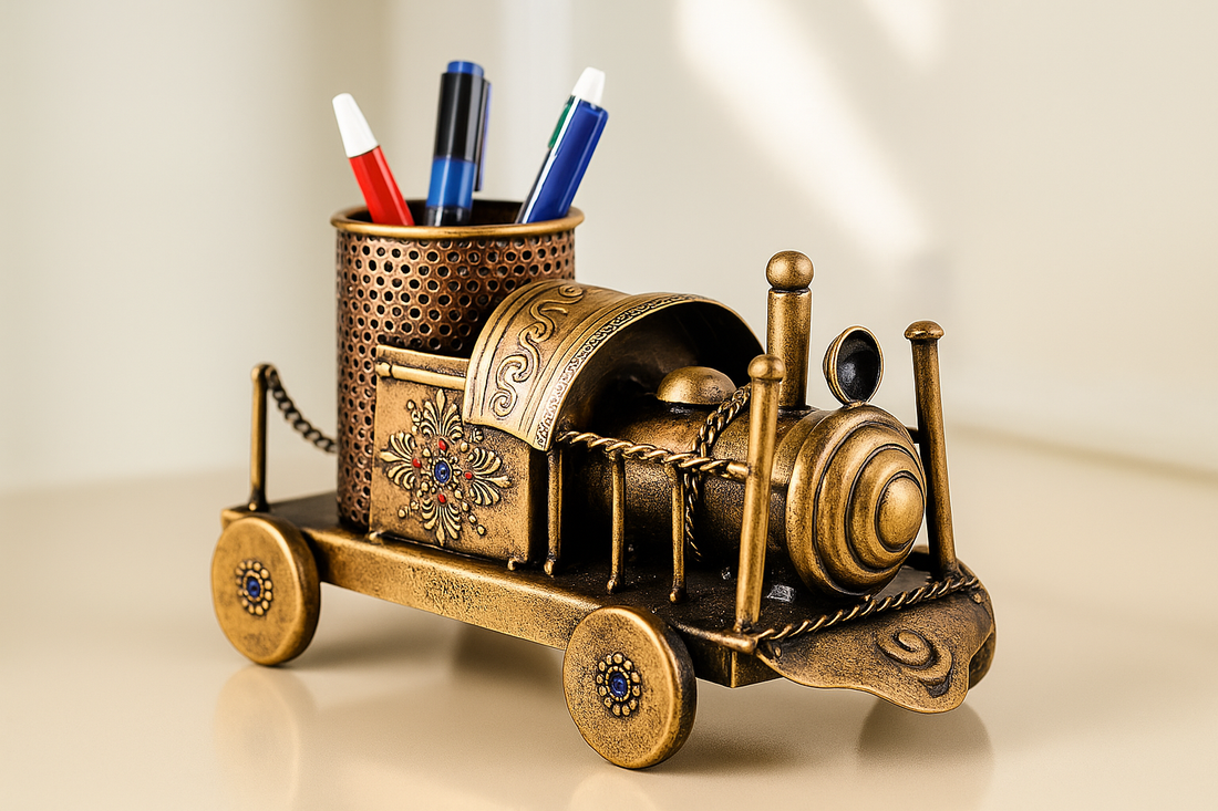 Handcrafted Wrought Iron Engine Pen Holder Material: IronType: Pen StandNet Quantity: 1Dimensions: Length: 9 inches...