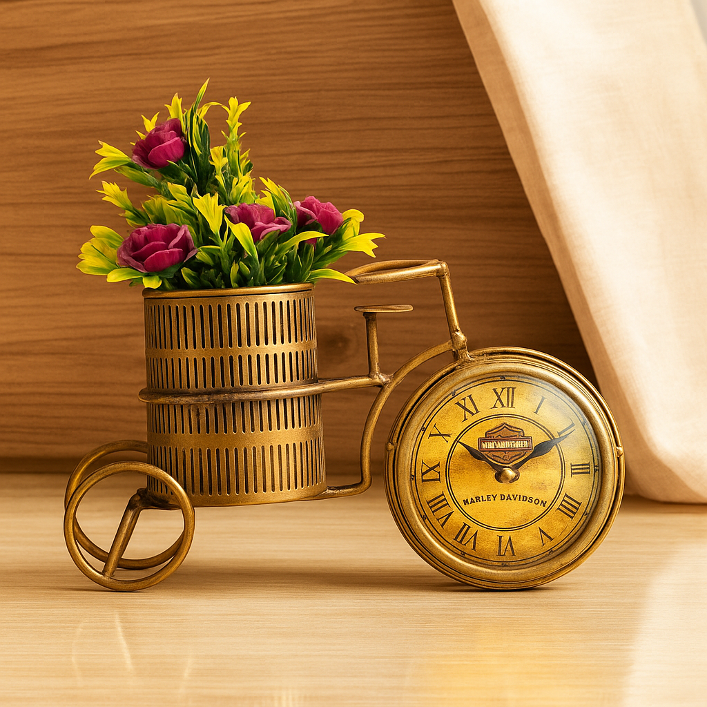 Metal Showpiece Flower Pot Stand With Table Clock Material: MetalType: Pen Stand with ClockNet Quantity:...