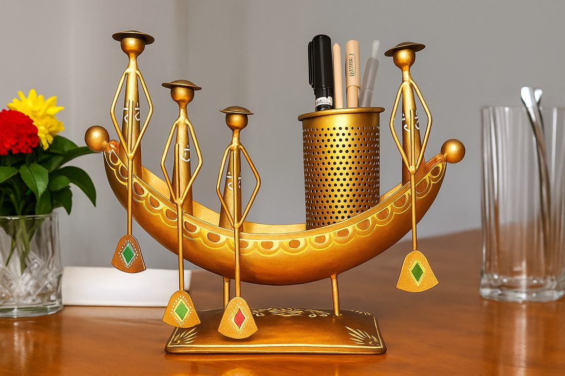 Metal Decorative Boat Pen Holder Product Details: Material: Metal Finish/Color: Antique Copper-Golden Dimensions: Length: 10...