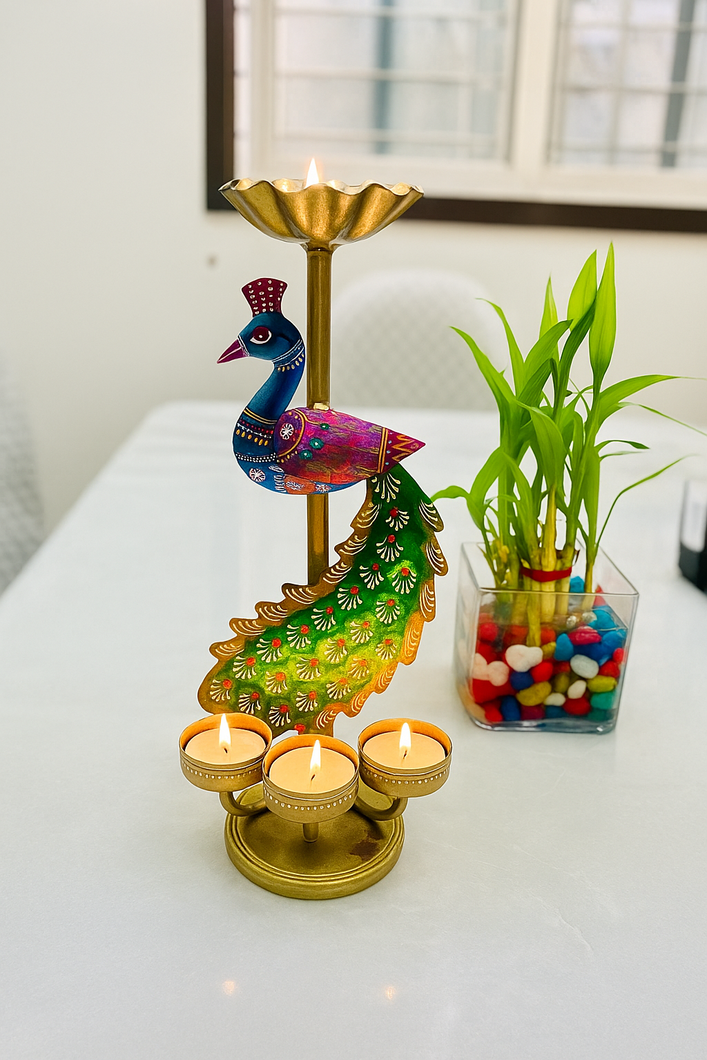 Peacock Tlight Candle Holder Table Decor Showpiece