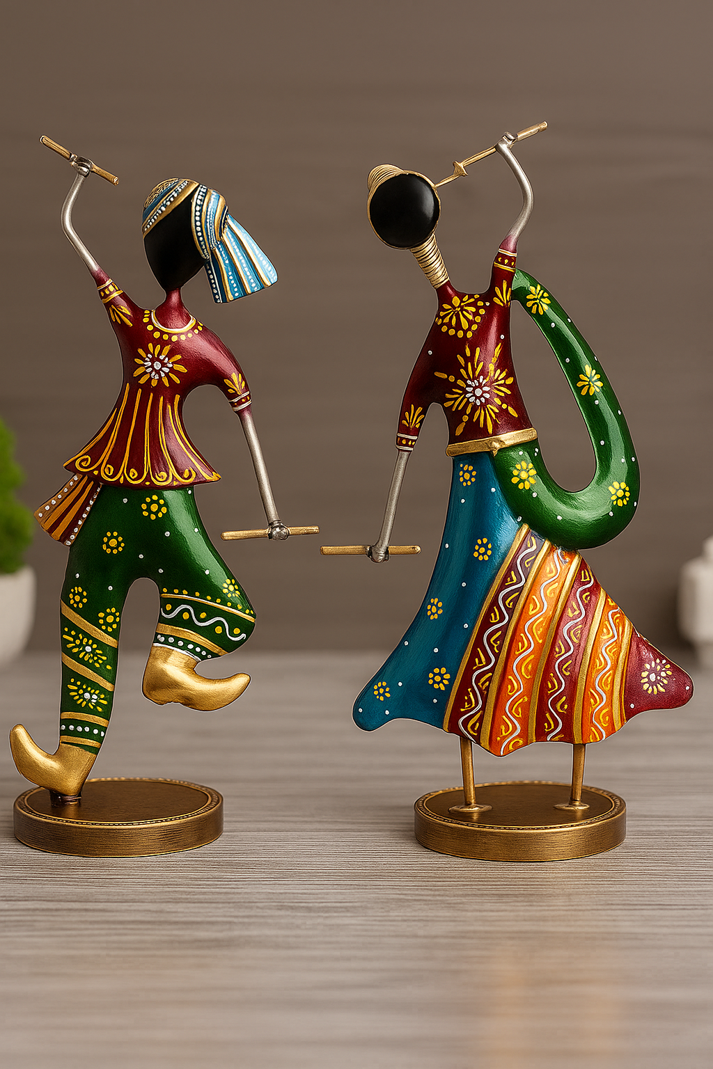Handicrafy Folk Fusion – Dandiya Couple Metal Showpiece