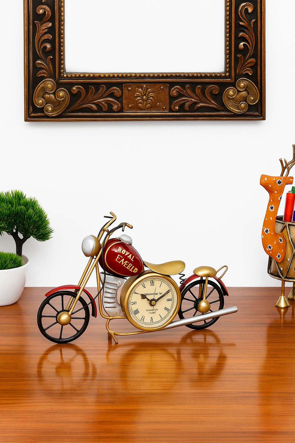 Metal Hand-Painted Red Bike Table Clock Showpiece