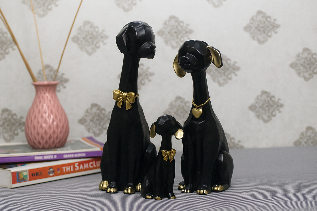 Black Sitting Dog Set of 3 Statue Sculpture for Home Decor, Anniversary, Wedding, Office Desk...