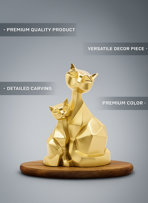 Golden Cat Pair Statue Sculpture