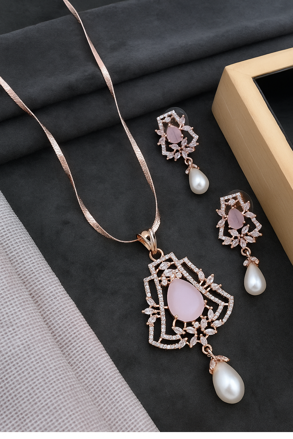 Rose Radiance Diamond-Cut Necklace SetBase Metal : Alloy Plating : Gold Plated Stone Type : Cubic Zirconia/American Diamond Sizing : Non-Adjustable Type : Necklace and...