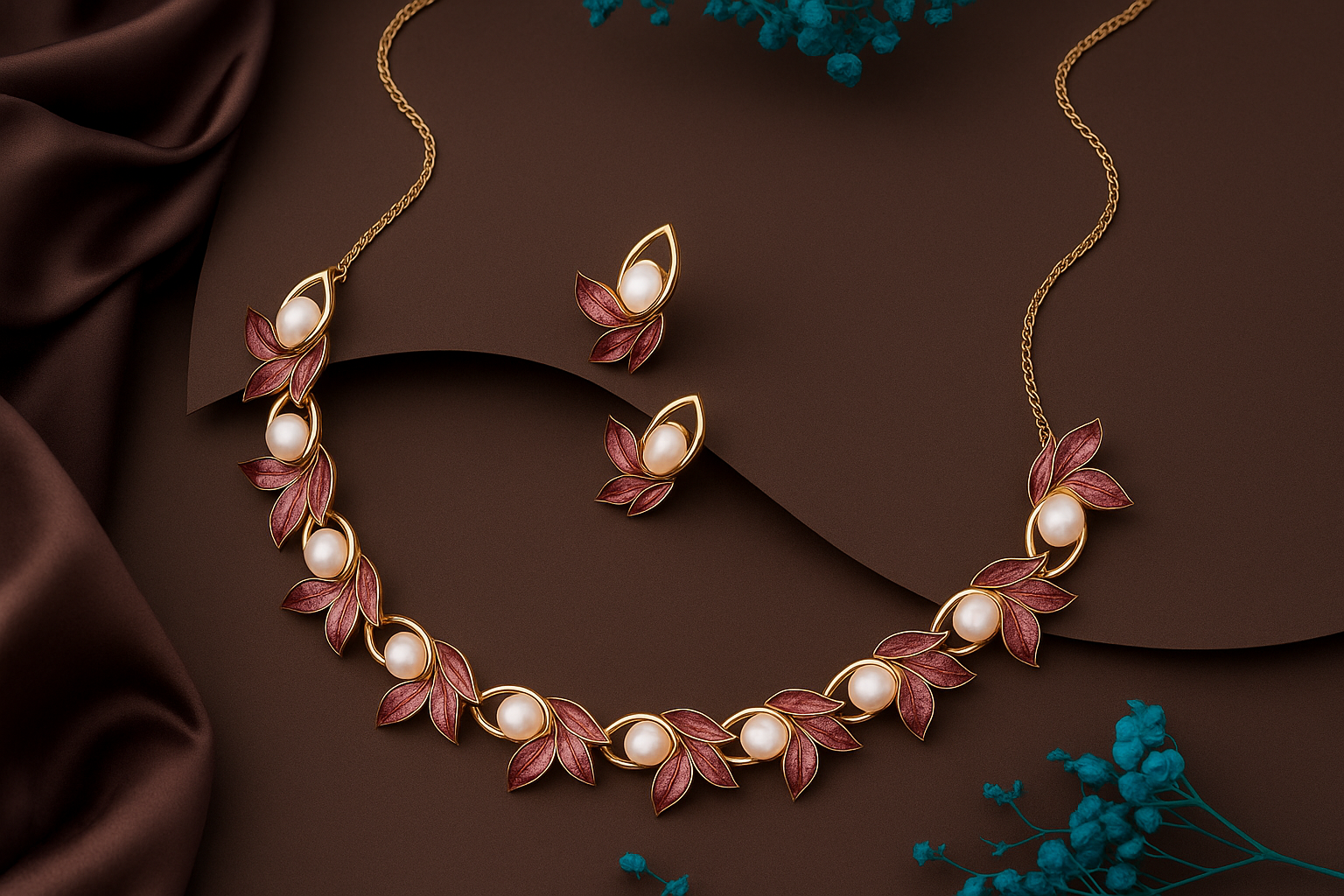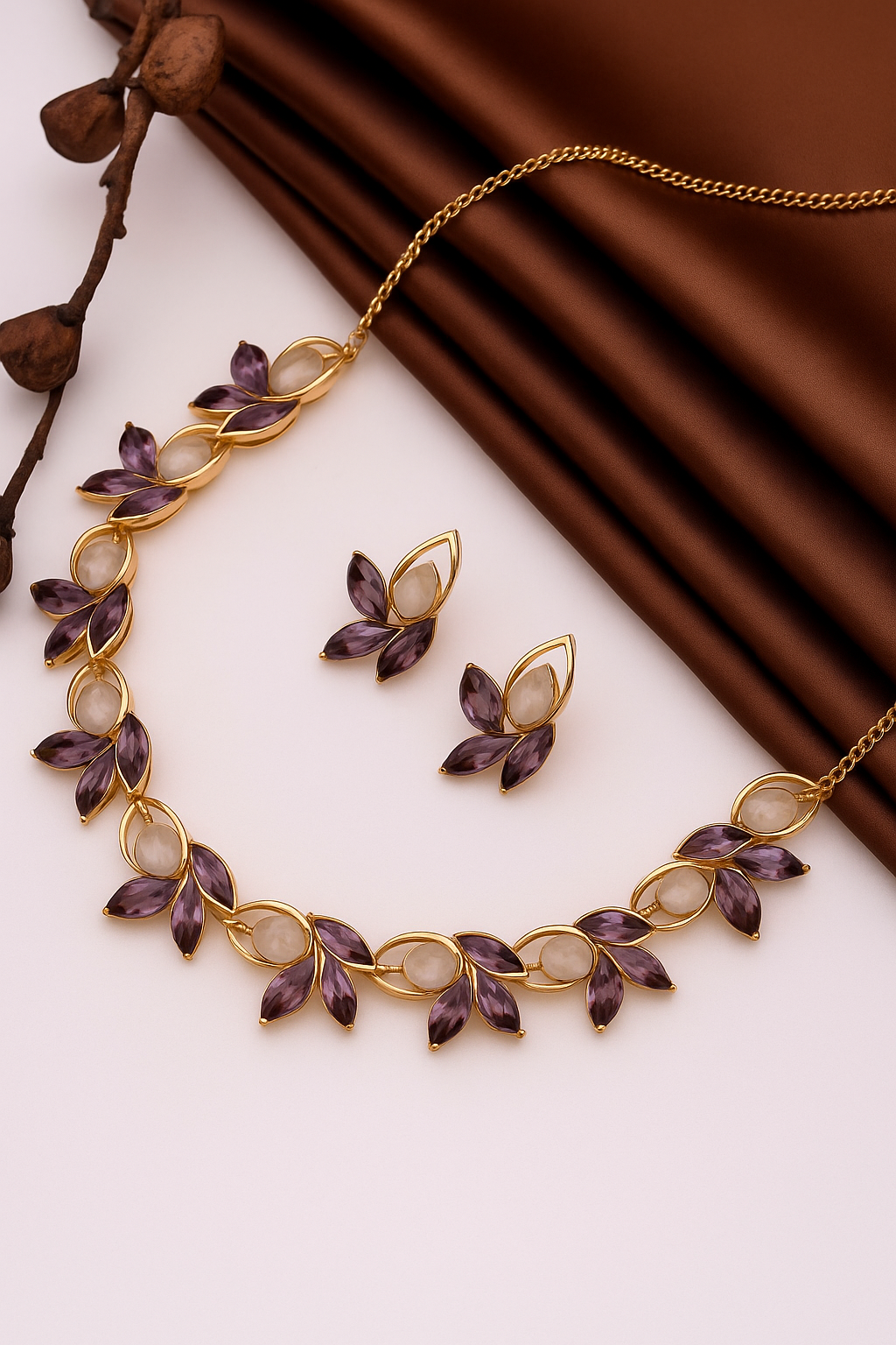 This elegant jewelry set includes a beautifully crafted choker-style necklace and a matching pair of stud earrings. The necklace is secured with an easy-to-use S-hook closure, while the earrings feature a post-and-back design for a comfortable fit.
