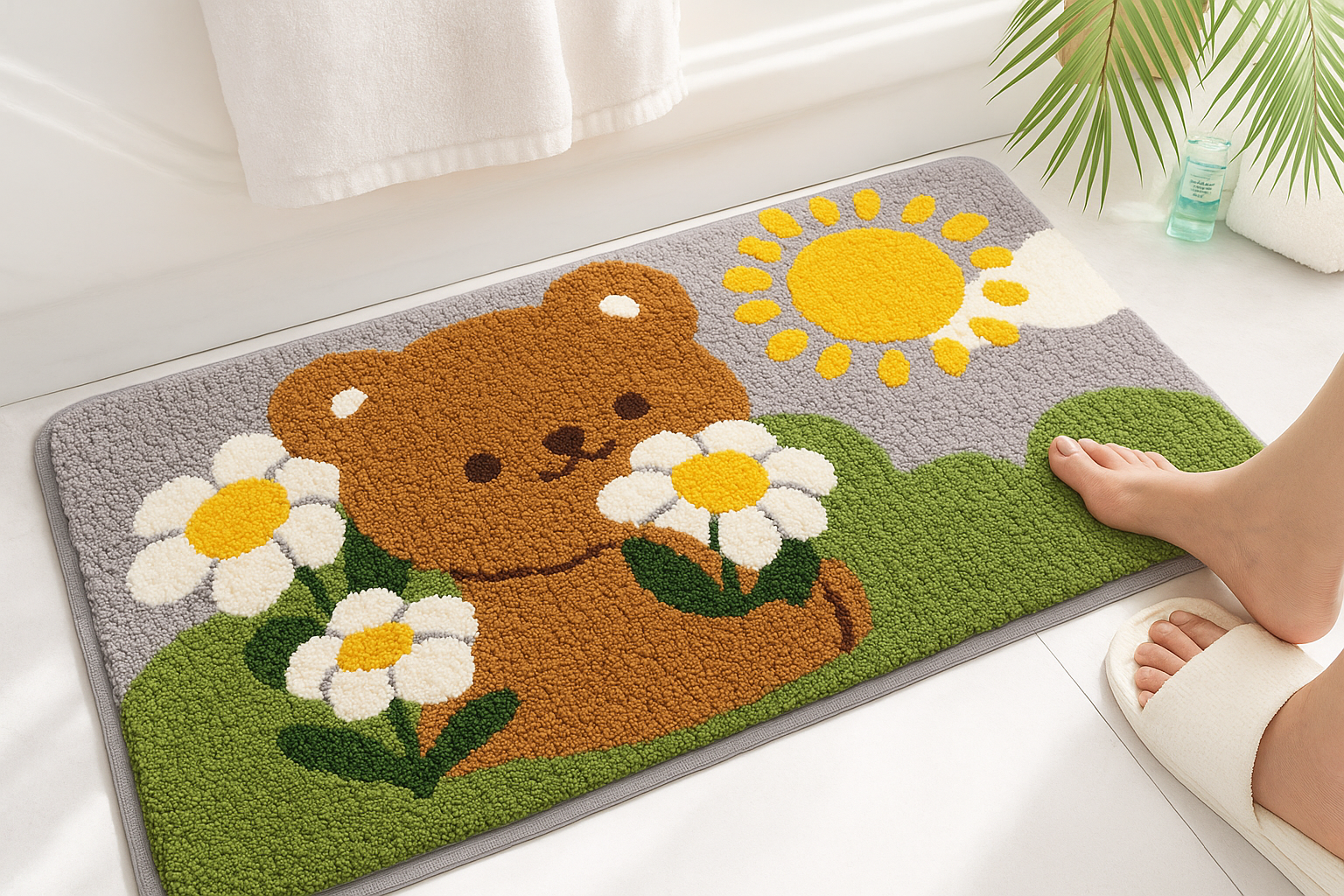 Designed with a non-slip latex backing, this anti-skid bath mat stays securely in place, providing extra safety after showers or in high-traffic areas. The cartoon design not only brightens up the space but also makes it a favorite among kids and bear lovers!