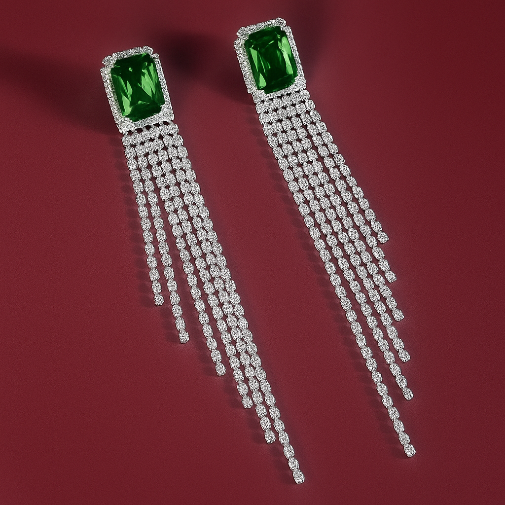 Elegant long dangle design with chain tassels