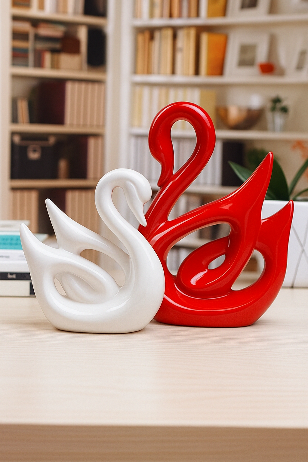 Elegant Clay Swan Figurines (Set of 2) | Handcrafted Table Decor for Home & Gifting