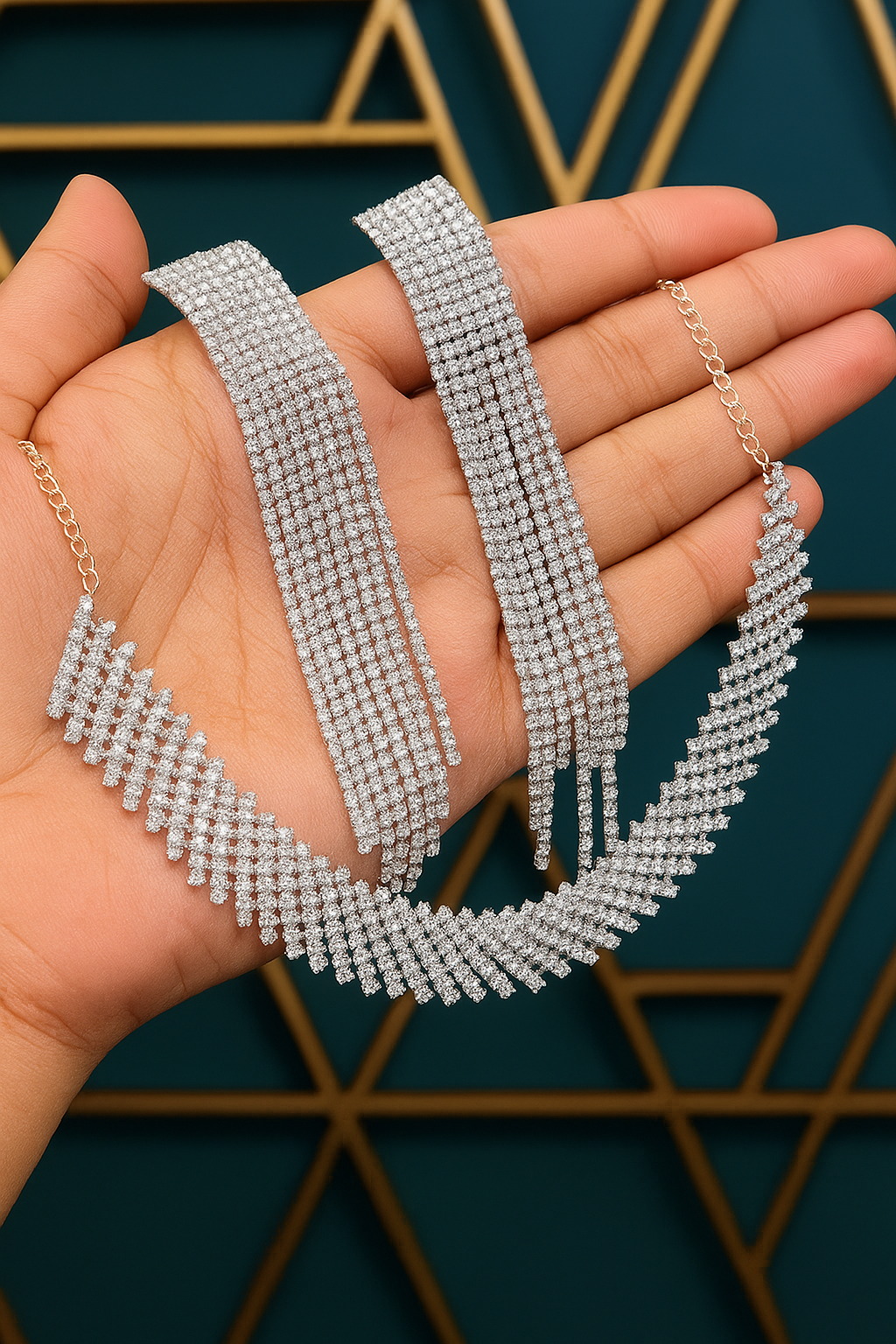 Add timeless elegance to your collection with this beautiful full jewelry set, featuring a stunning necklace and long earrings. Designed with sparkling Cubic Zirconia stones and a premium silver-plated finish, it’s perfect for every occasion and suits women and girls of all ages.