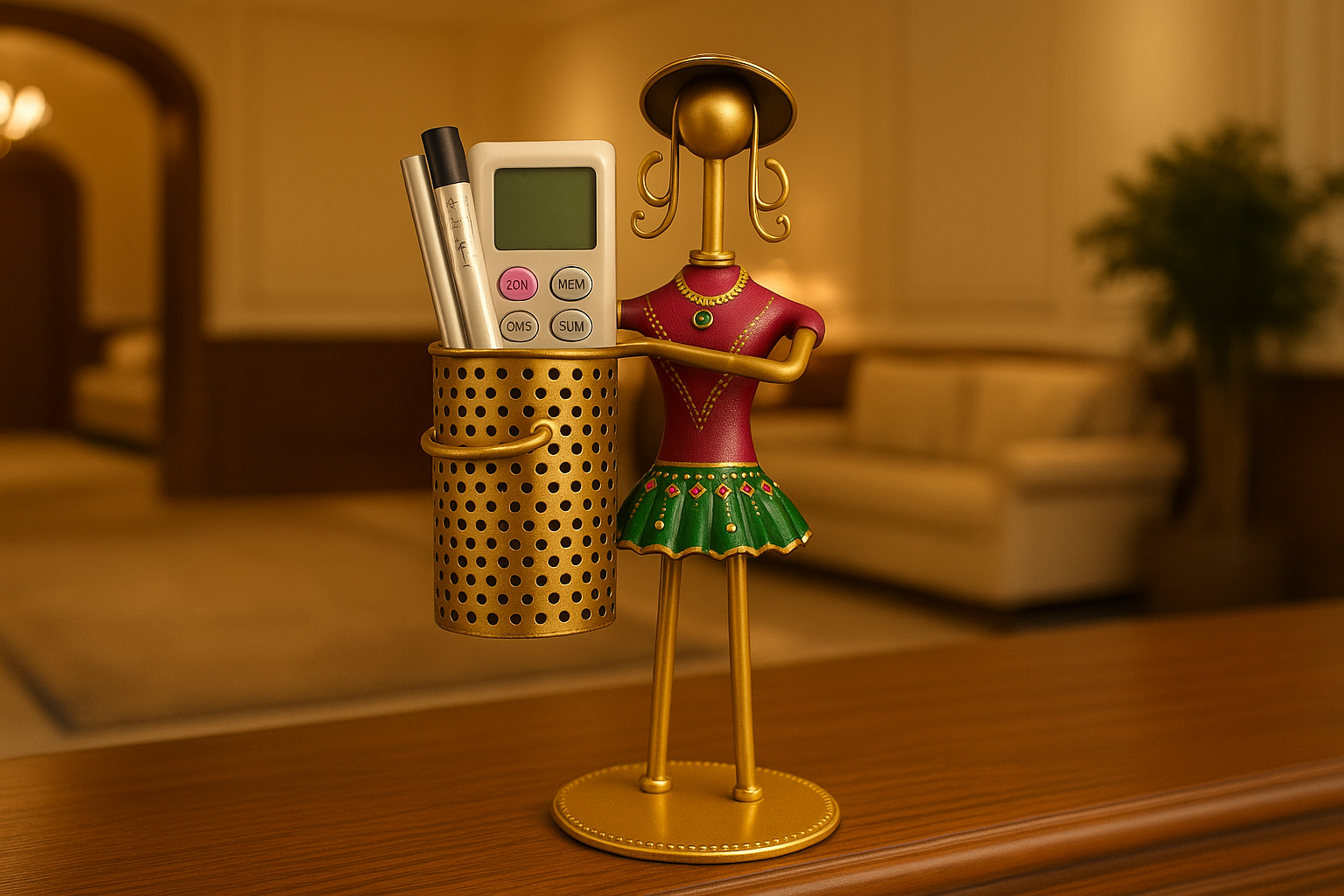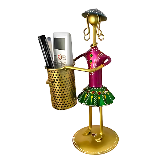 Add a touch of heritage charm to your space with this Metal Decorative Doll Pen Holder, a unique blend of functionality and traditional artistry. Handcrafted by skilled Indian artisans, this showpiece doubles as a utility item, enhancing both your decor and workspace organization.