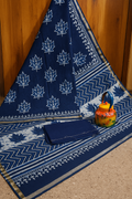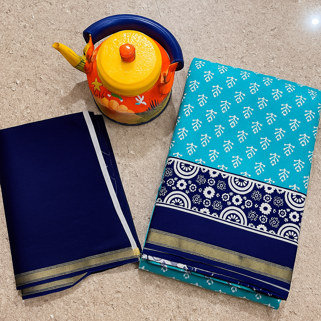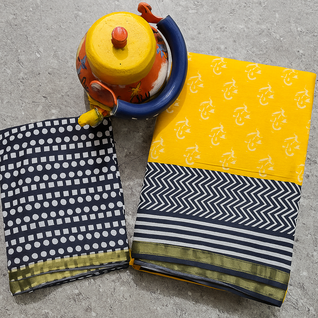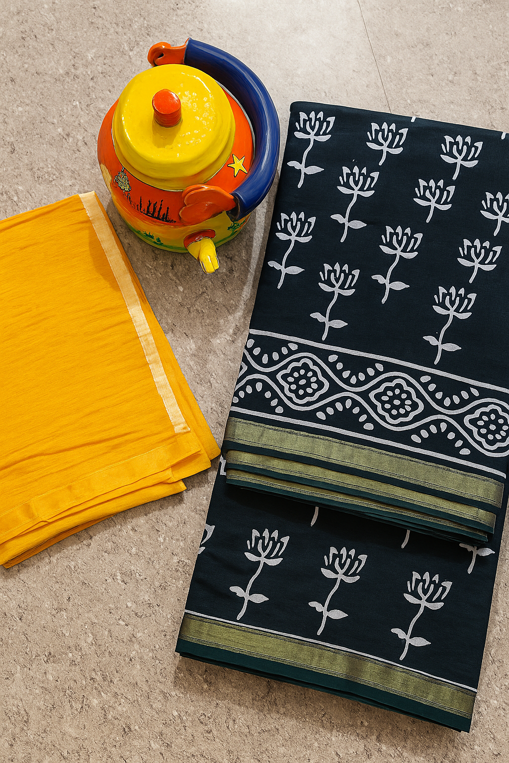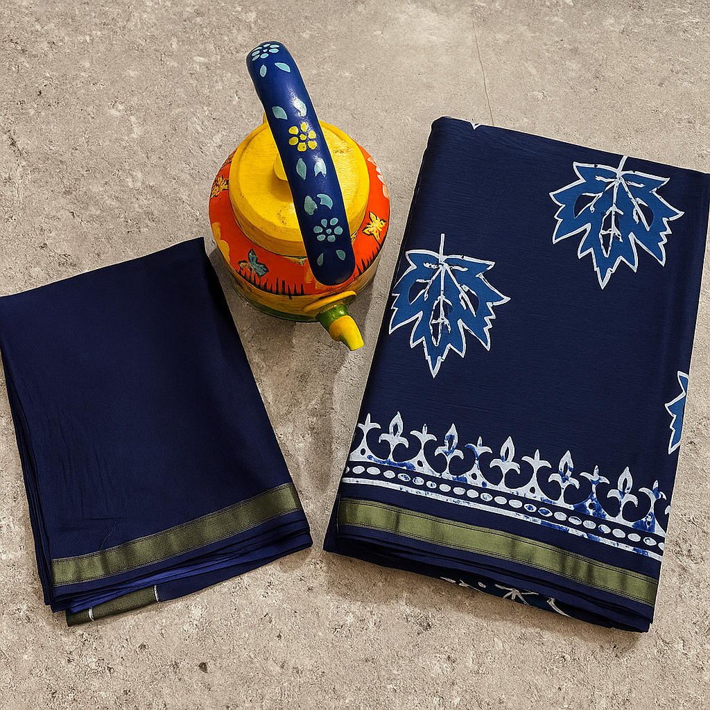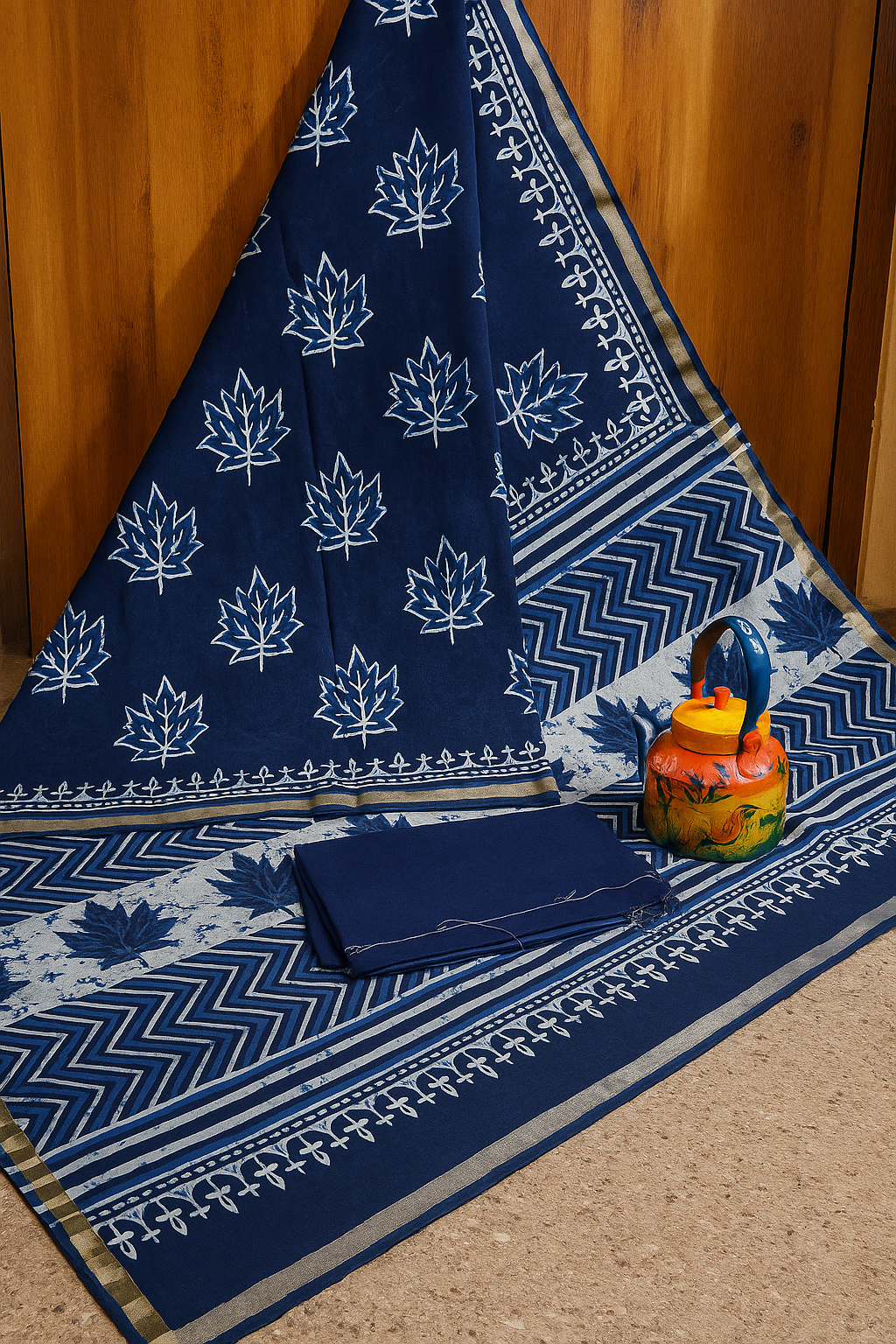 Premium quality soft zari cotton mulmul vanaspati Ajrakh printed saree 6.5 mtrs with zari cotton blouse piece