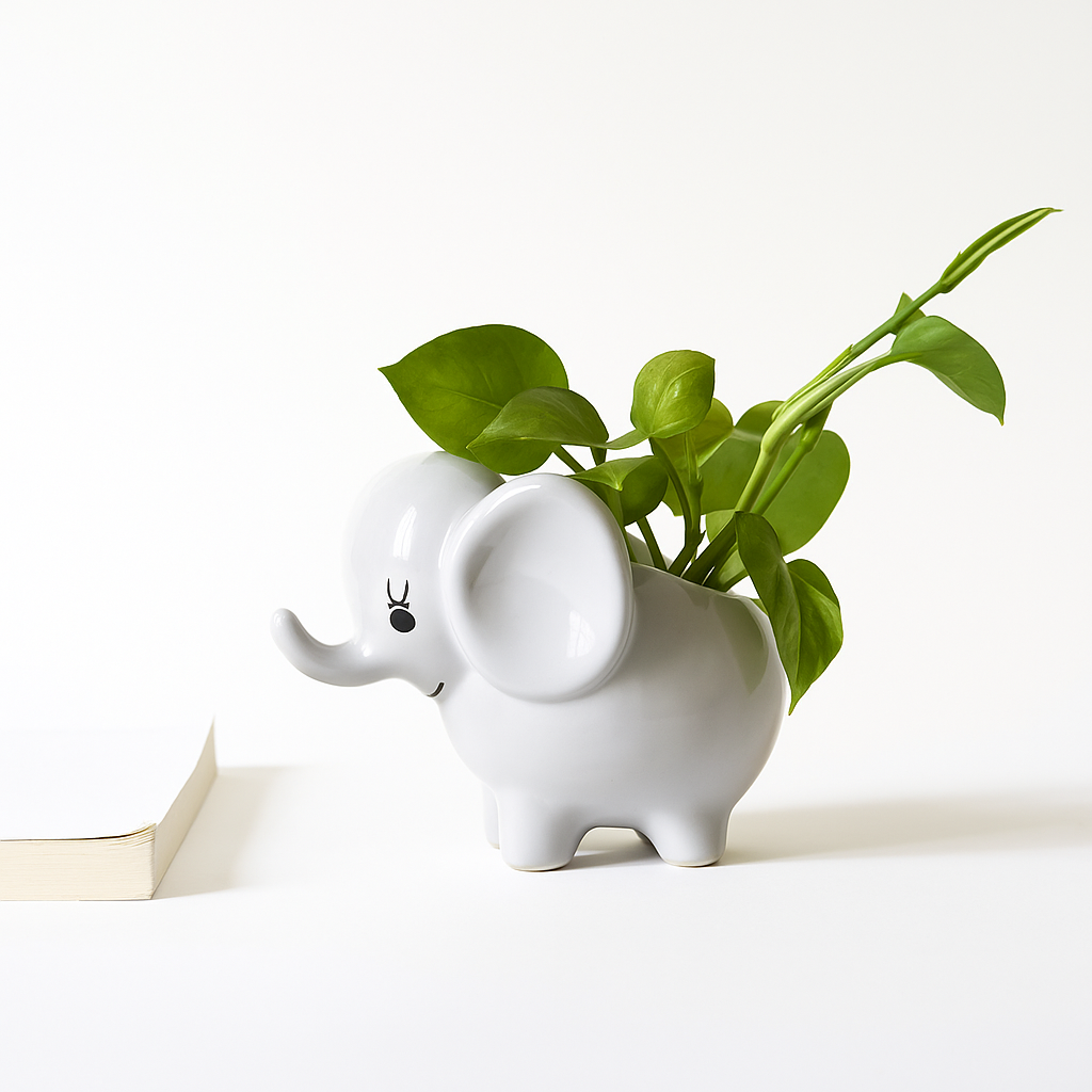 Bring charm and elegance to your décor with this Cute Small White Elephant Ceramic Planter, perfect for tabletops, desks, gardens, or gifting. Designed in a modern style, it features a smooth ceramic finish, a drainage hole for healthy plant growth, and an adorable elephant shape that adds personality to any space.