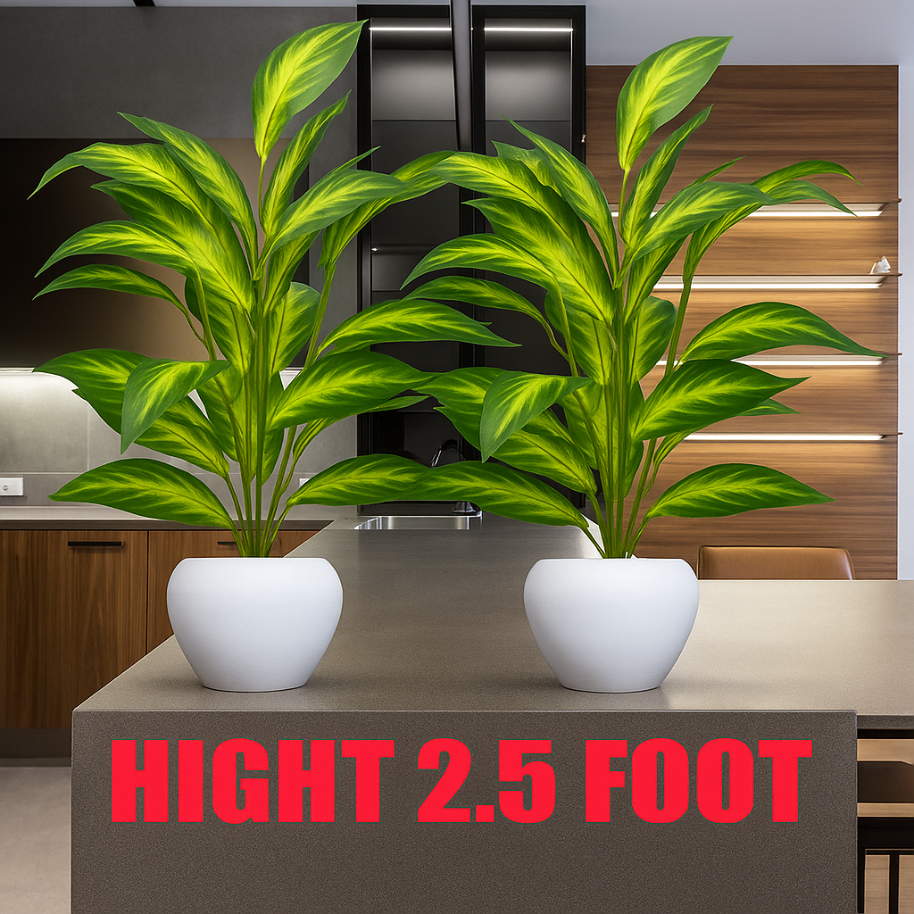 Bring home the charm of tropical greenery with the of 2 Big Artificial Plants with Pot. Featuring 26 lush leaves and a realistic trunk, each plant stands 80 cm (2.5 feet) tall, adding a natural and elegant touch to any space—without the need for watering or upkeep.