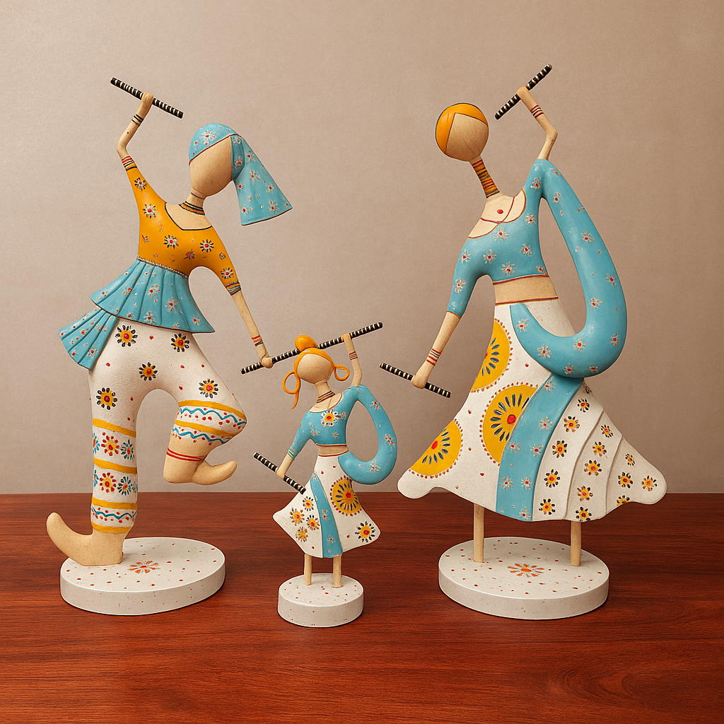 Premium Garba Dance Family Metal Showpiece – Set of 3