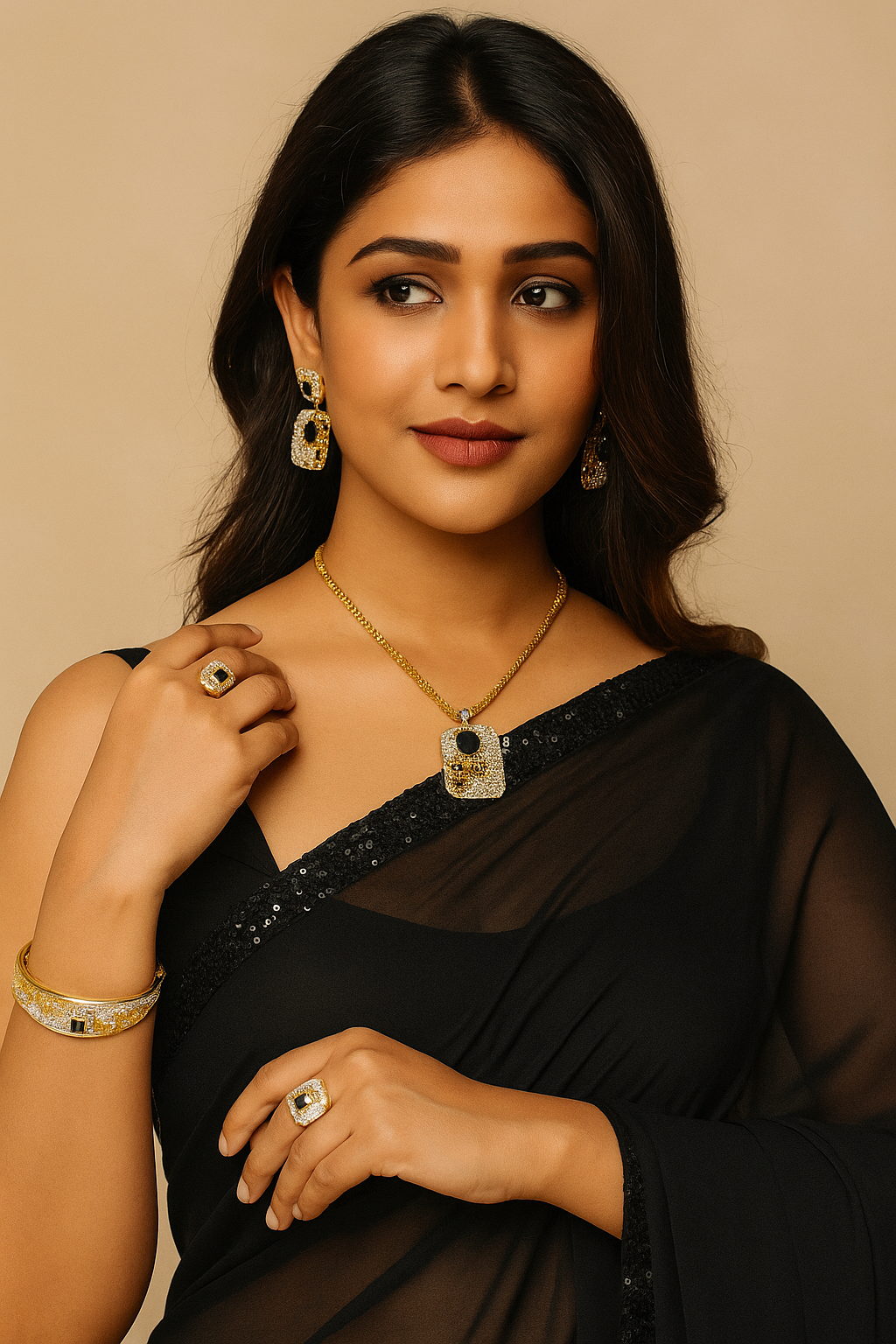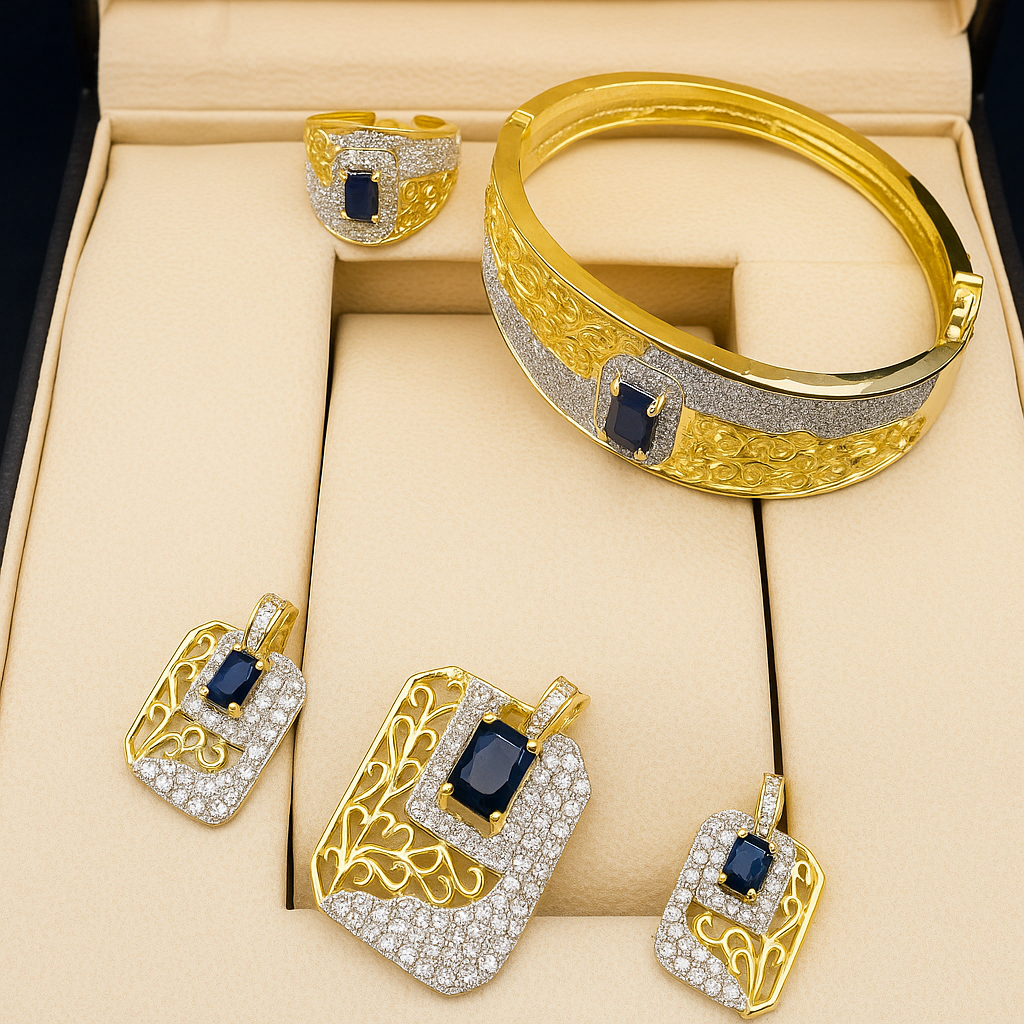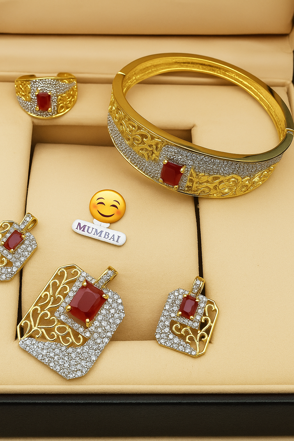 Regal Ruby Elegance – Gold & CZ Designer Jewelry Set