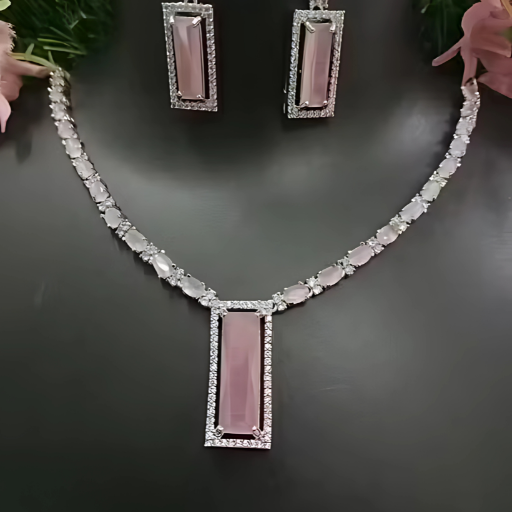 Illuminate your elegance with our Graceful Rhodium-Plated American Diamond Necklace Set. Designed to exude sophistication, this exquisite set features a brilliant arrangement of sparkling American diamonds that beautifully enhance any outfit—perfect for weddings, parties, or special occasions.