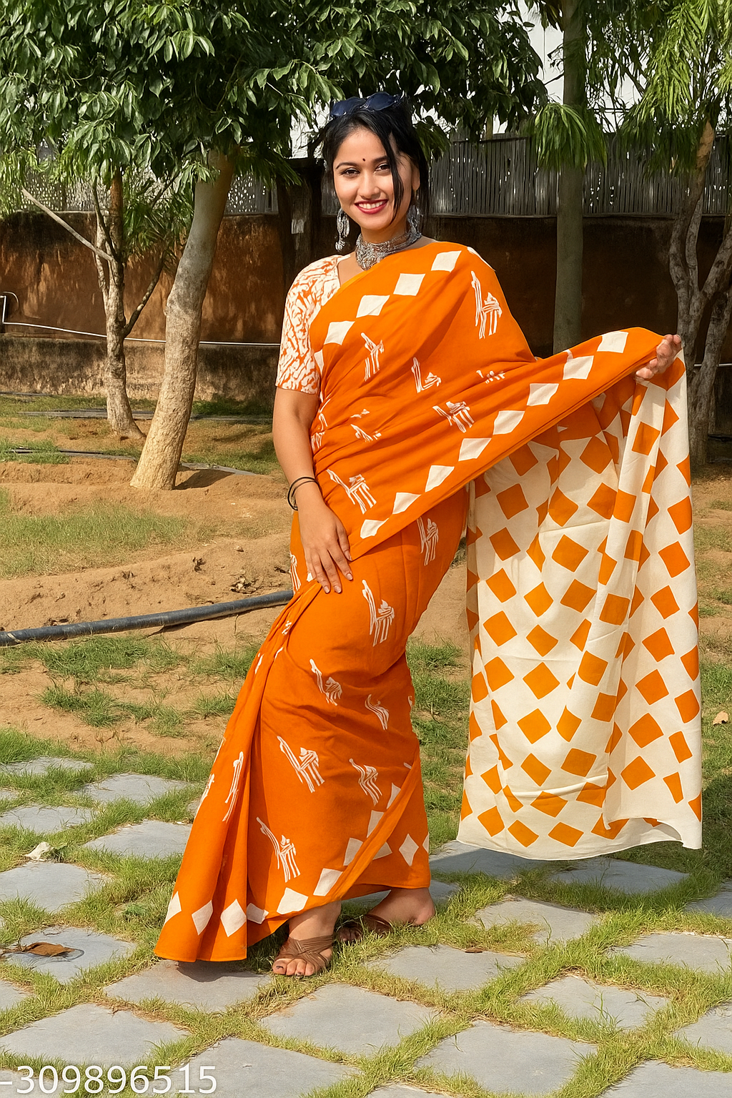 Pure 100% cotton mulmul hand printed Bagru/Sanganeri/Jaipuri print saree with Blouse ( summer seasoon Wear Saree )