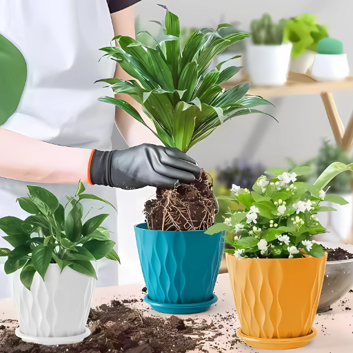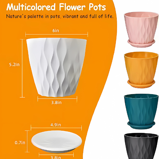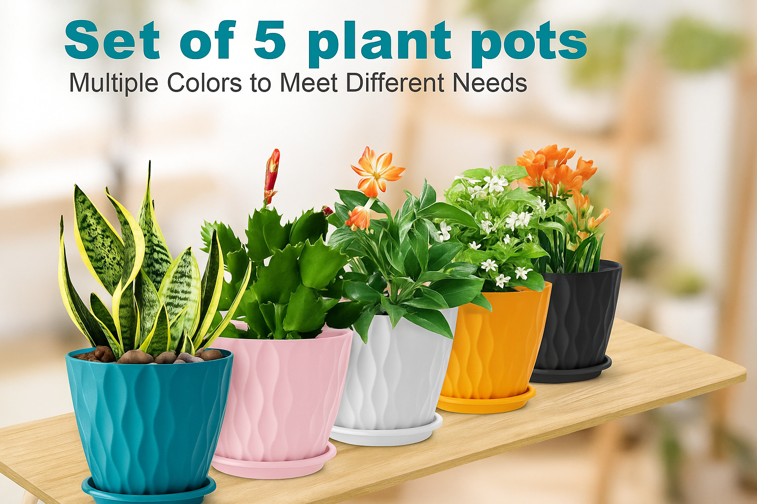 Add a splash of color to your indoor or outdoor gardening with this set of 5 Decorative Plant Pots, each in a unique and vibrant shade. Designed with a textured finish and sturdy base trays, these pots combine functionality with visual appeal.